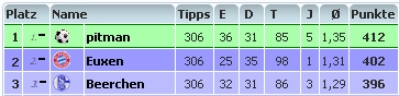 Sieger des diesjährigen Tippspiels ist "pitman" mit 412 Punkten.