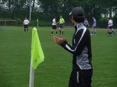 Wie zu erwarten, entwickelte sich die Partie zu einem Geduldsspiel. Leider schlossen wir unsere Kombinationen, trotz der Warnung unseres Trainers vor dem Spiel, immer wieder zu früh ab. Wir versuchten in der Anfangsphase den Gegner vornehmlich durch Flanken aus dem Halbfeld zu überwinden. Diese Bälle konnte die Verteidigung allerdings immer wieder leicht hinausköpfen. Die wenigen Chancen ergaben sich meist nach Flankenläufe bis an die Grundlinie oder nach schnellem Kurzpassspiel. Doch leider fehlte die nötige Präzision im letzten Anspiel oder im Abschluss.
