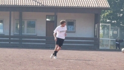 (mb) Wie in den letzten beiden Spielen konnten wir die Anfangsphase dominieren. Allerdings endete das ansprechende Spiel kurz vor dem 16er des Gegners. Torchancen waren Mangelware, sodass uns dieses Mal kein früher Torerfolg gegönnt war. Ob es das Spiel auf dem ungewohnten Belag Asche, die nicht nötige Präzision in unserem Passspiel oder einfach die zu grell scheinende Sonne war, kam es schließlich zu einem Bruch in unserem Spiel. Der Gegner kaufte uns mit seiner Aggressivität, die zumeist auf einem fairen Niveau lag, langsam aber sicher den Schneid ab. Mehrere Unsicherheiten in unserem Defensivverhalten verhalfen ihm immer wieder zu Chancen, die allerdings von unserem Torwart entschärft werden konnten oder das Tor verfehlten.